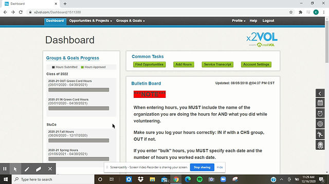 When volunteering, it is important to keep track of your hours. X2Vol is the main way to do so. Here, written steps show you how to open an X2vol account and log in hours.